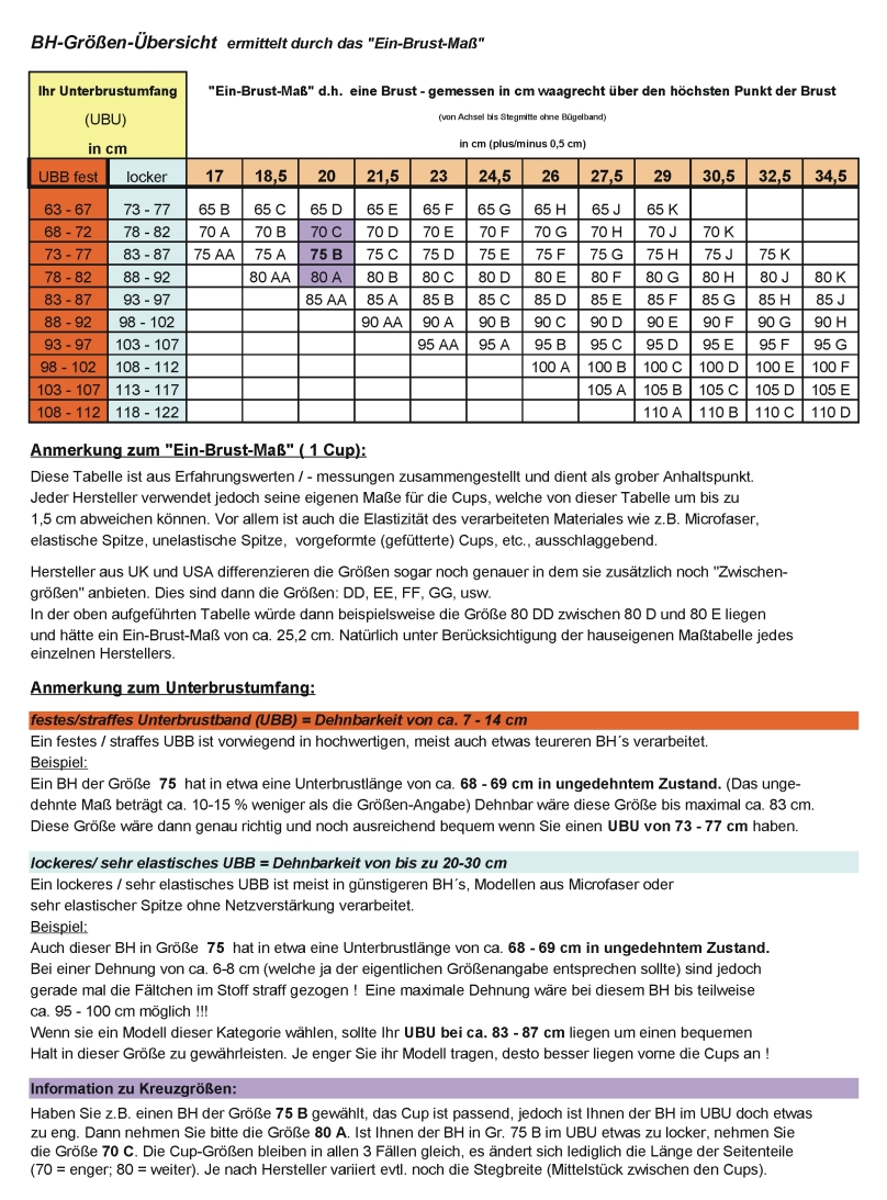 Leider kann ich mit dieser "Luftmessung"(Wert zwischen beiden Brüsten), wie es in den üblichen online- BH-Größen-Rechnern bezüglich des Oberbrustumfanges angeboten wird, gar nichts anfangen. Deshalb habe ich nachfolgend meine ganz eigene Maßtabelle erstellt. Hauptsächlich natürlich auch, da ich dieses "Ein-Brust-Maß" als Maßangabe benötige um meine Lack- & Leder-Creationen möglichst passend fertigen zu können. |